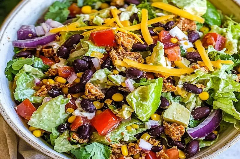 Easy taco salad recipes often include ground beef or turkey, black beans, corn, tomatoes, lettuce, and cheese. You can customize your salad with toppings like avocado and salsa. Tex Mex egg rolls recipe For a vegetarian option, replace meat with quinoa or lentils. This flexibility makes taco salads perfect for quick meals or gatherings. For more inspiration, check out this macaroni cheeseburger soup recipe.