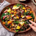A light balsamic vinaigrette or maple mustard dressing complements Thanksgiving Recipes: Vegan Fall Harvest Salad beautifully. To make a simple vinaigrette, whisk together olive oil, balsamic vinegar, a drizzle of maple syrup, Dijon mustard, salt, and pepper until well combined. This dressing adds a hint of sweetness perfect for fall flavors while balancing the earthiness of roasted vegetables and nuts in the salad. For more inspiration, check out this Baked Apples with Feta recipe.