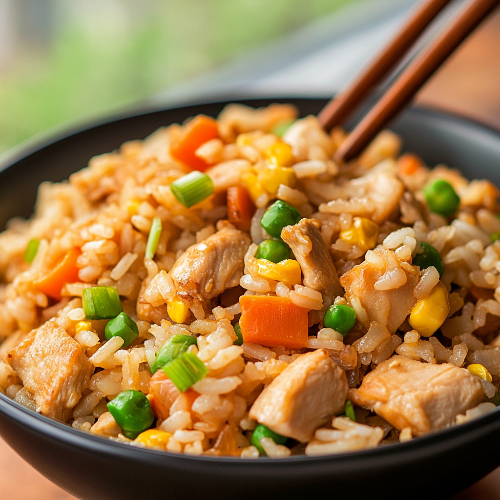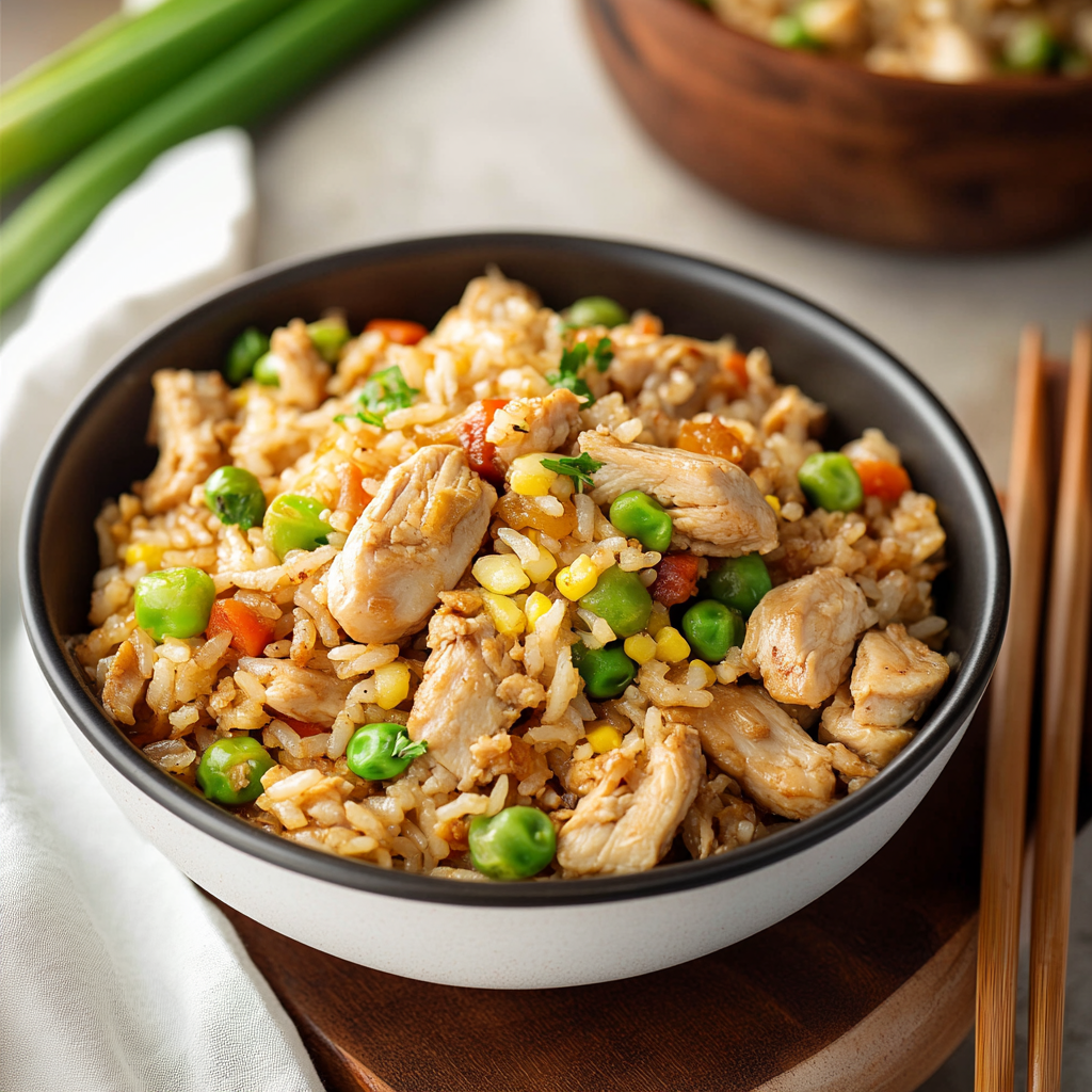 Chicken Fried Rice is a beloved dish that brings comfort and flavor to the table. This savory meal combines tender chunks of chicken with colorful vegetables and perfectly cooked rice, all sautéed together in a blend of soy sauce and aromatic spices. Whether you’re looking to whip up a quick dinner after a long day or want to impress your guests at a gathering, this recipe has you covered.