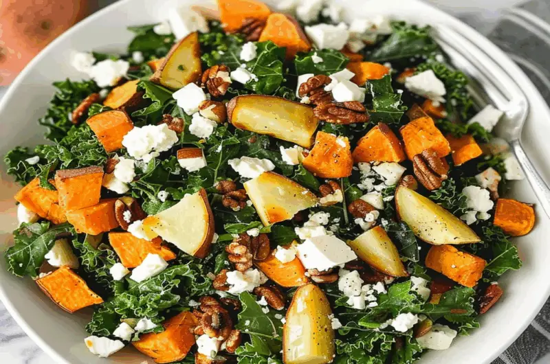 In summary, this winter kale, sweet potato & feta winter salad combines nutritious ingredients that are both delicious and satisfying. The health benefits of kale paired with the sweetness of roasted sweet potatoes create a delightful balance of flavors. Adding feta cheese enhances the taste while providing creaminess. This versatile salad allows for various ingredient additions based on personal preference. Enjoy this vibrant dish as a main course or a side at your next gathering! For more inspiration, check out this baked apples with feta recipe.