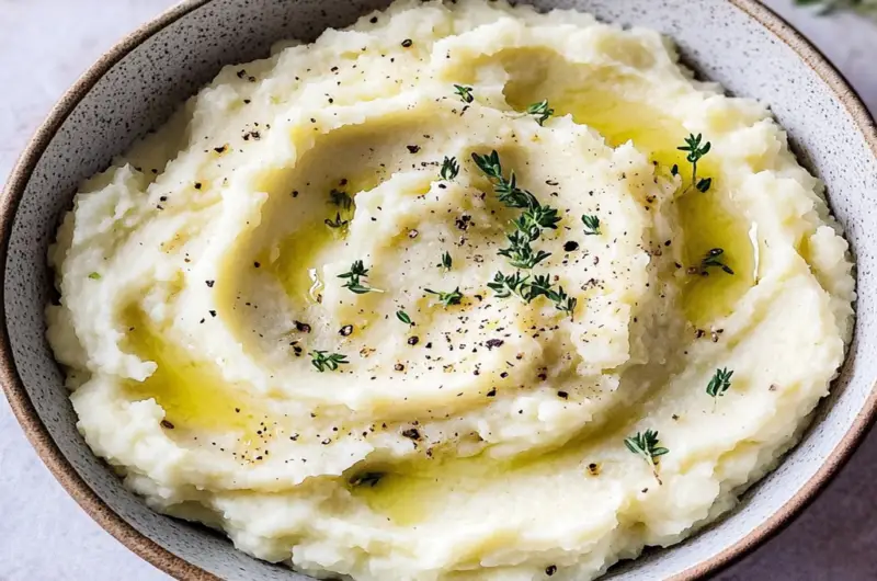 - Blend: In a food processor, blend cauliflower, roasted garlic, butter, and heavy cream until smooth.