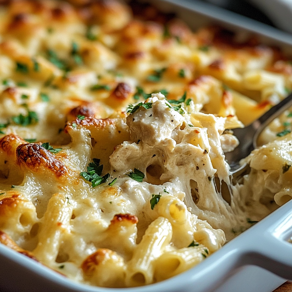 Creamy Garlic Parmesan Chicken Pasta Bake