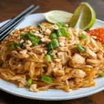 Transfer to plates and garnish with chopped peanuts and lime wedges for an extra zing. Enjoy every bite of your homemade Chicken Pad Thai—you’ve earned it!