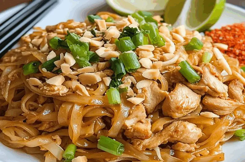 Chicken Pad Thai is a deliciously vibrant dish that brings the flavors of Thailand to your dining table. This quick and easy recipe features tender chicken, chewy rice noodles, and a colorful medley of fresh vegetables, all tossed in a rich, savory sauce. Perfect for busy weeknights or special occasions, this homemade Chicken Pad Thai rivals any restaurant version and is sure to impress family and friends alike.