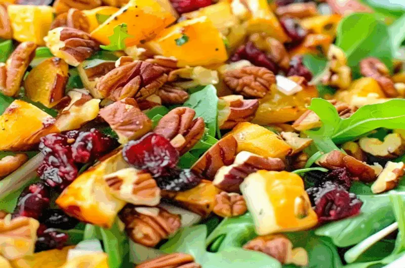 In summary, the Fall Harvest Salad with Cranberry Pecan Mix is an ideal dish that brings together seasonal flavors beautifully. With its vibrant mix of fresh greens, fruits, nuts, and a tangy dressing, this salad not only pleases the palate but also adds nutritional value to your meal. Preparing it ahead of time allows you to enjoy this delightful dish without hassle during busy fall days. Enjoy making this simple yet elegant recipe as part of your autumn culinary repertoire!