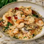 In summary, Garlic Orzo Tuscan Shrimp for Two is an easy yet flavorful recipe that brings together succulent shrimp and creamy orzo pasta in just 30 minutes. With fresh ingredients like garlic and spinach, this dish is perfect for any occasion—from romantic dinners to casual weeknight meals. pair this with stuffed salmon Remember to savor each bite and enjoy the delightful combination of flavors that make this recipe truly special.
