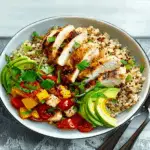 The scent of grilled chicken wafting through the air, mingling with the earthy aroma of quinoa and bright bursts of fresh veggies is like a warm hug for your taste buds. Imagine biting into tender, seasoned chicken atop a fluffy bed of quinoa, all bathed in a zesty dressing that dances on your palate. This isn’t just another boring meal; it’s a culinary adventure waiting to unfold. For more inspiration, check out this baked apples with feta recipe.