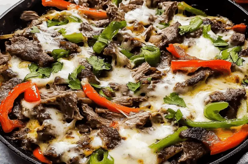 Philly Steak & Cheese Skillet is a mouthwatering one-pan dish that captures the essence of the classic cheesesteak. Featuring tender, thinly sliced beef sautéed with colorful bell peppers and sweet onions, all topped with gooey cheese, this quick recipe brings comfort food to your table in just 30 minutes. Ideal for busy weeknights or casual gatherings, each bite delivers a satisfying blend of flavors and textures that will leave everyone wanting more.