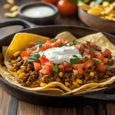 Transfer your cheesy masterpiece onto plates or serve directly from the skillet for that rustic flair. Add any additional toppings like chopped parsley or hot sauce if desired.