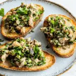 Sardine or Mussel Salad on Toast with Capers and Seaweed is a scrumptious, quick-to-make dish that marries creamy seafood with the zesty crunch of capers and the umami flavor of seaweed atop a crispy toast base. Ideal for light lunches, appetizers, or brunches, this vibrant recipe will transport you to seaside memories with every delicious bite.