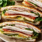Savor the delicious layers of an Italian Turkey Club Sandwich, a delightful combination of juicy turkey breast, crispy bacon, fresh lettuce, ripe tomatoes, and creamy Swiss cheese. Perfect for any occasion, this sandwich is easy to prepare and packed with flavor. Whether it’s a casual lunch or a festive gathering, impress your guests with this vibrant culinary creation!