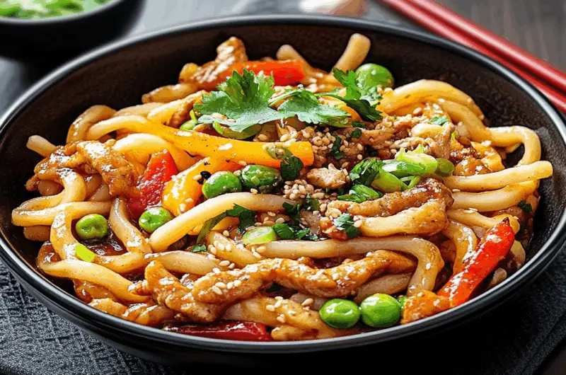 Embark on a culinary fusion journey with these Fusion Udon Noodles, where the comforting textures of Japanese udon meet the vibrant flavors of Mexico. This easy-to-make dish features tender chicken, crisp vegetables, and a zesty sauce that dances on your palate. Perfect for weeknight dinners or entertaining guests, it promises to impress with every delectable bite.
