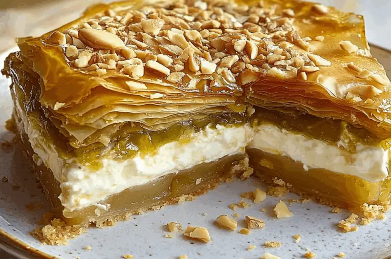 Honey Baklava Cheesecake is a decadent fusion dessert that combines the creamy richness of cheesecake with the delightful crunch of baklava. This unique treat is infused with sweet honey and warm spices, creating an irresistible flavor profile that will impress your guests. Perfect for any celebration or as a luxurious indulgence, this cheesecake is destined to become a beloved favorite in your dessert repertoire.
