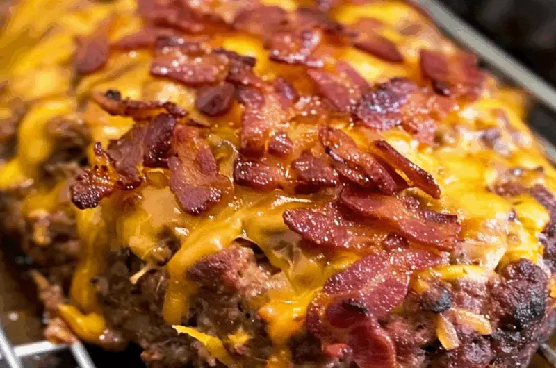 Start by preheating your oven to 350°F. Mix the ground beef, bacon, cheese, and spices in a bowl. Form the mixture into a loaf shape and bake it for about an hour. Don’t forget to baste it halfway through for extra moisture.