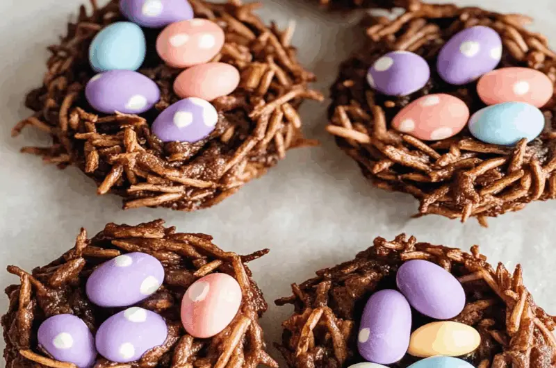 - These Easter Bird’s Nest Cookies are not only simple to whip up but also boast an irresistible chocolate flavor paired with a satisfying crunch.