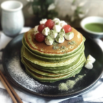Matcha-inspired pancakes pair beautifully with a variety of toppings. Fresh fruits like strawberries, blueberries, or bananas add a natural sweetness and complement the earthy flavor of matcha. For an indulgent treat, consider drizzling maple syrup or honey over the top. A dollop of whipped cream can enhance the overall experience, while nuts like almonds or walnuts provide extra crunch. You can also sprinkle some additional matcha powder on top for an attractive presentation.