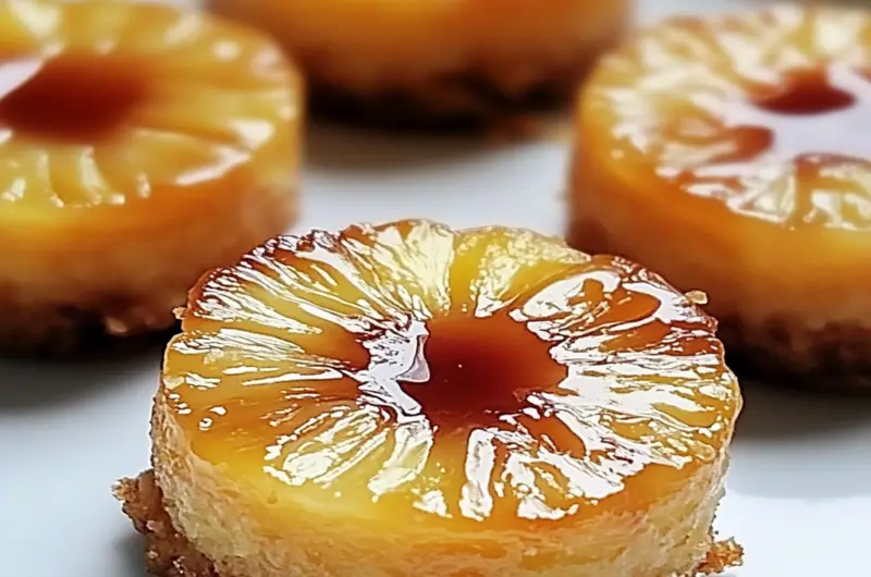 Mini pineapple upside down cakes are small, individual-sized desserts that feature a caramelized pineapple slice at the bottom of each cake. These delightful treats are baked with a moist and fluffy cake batter, typically flavored with vanilla and butter. Once baked, they are inverted to reveal the beautifully arranged pineapple on top. These mini versions are perfect for parties or gatherings, allowing guests to enjoy a classic dessert in a convenient size. For more inspiration, check out this baked apples recipe recipe.