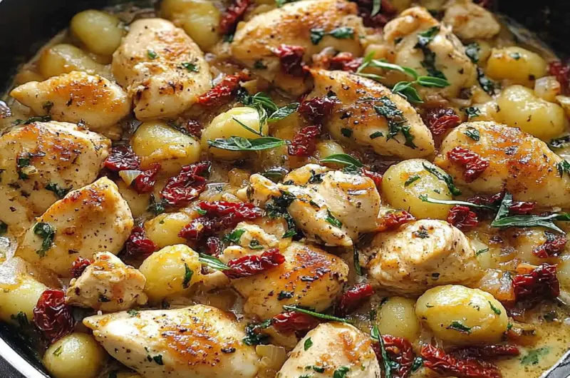 One Skillet Sun-Dried Tomato Chicken and Gnocchi is a delicious, one-pan meal featuring tender chicken, flavorful sun-dried tomatoes, and soft gnocchi. This recipe combines the richness of Italian cuisine with convenience, making it perfect for busy weeknights. perfect side for chicken dishes The dish is cooked in a single skillet, allowing the flavors to meld beautifully while minimizing cleanup.