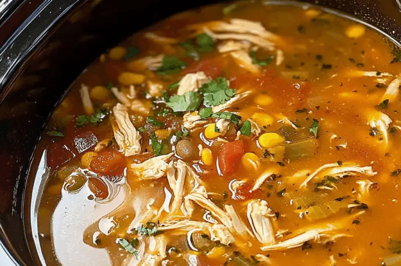 In summary, Slow Cooker Chicken Tortilla Soup is an easy-to-make dish that combines tender chicken with vibrant vegetables and spices. Its versatility allows you to customize toppings according to your tastes. With minimal prep time and a range of flavors developed during cooking, this soup is perfect for any occasion. Whether you’re looking for a weeknight meal or something special for gatherings, this recipe delivers comfort food at its best! Enjoy a warm bowl today! For more inspiration, check out this Amish Country Casserole recipe.