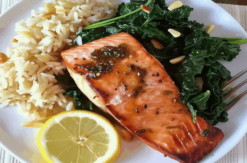 There’s something undeniably magical about the combination of flavors in Soy-Glazed Salmon with Garlicky Kale and Rice. Imagine biting into perfectly cooked salmon that glistens with a savory glaze, paired with vibrant greens and fluffy rice. It’s like a delicious hug from the ocean, right on your plate! For more inspiration, check out this garlic butter lobster tail recipe.
