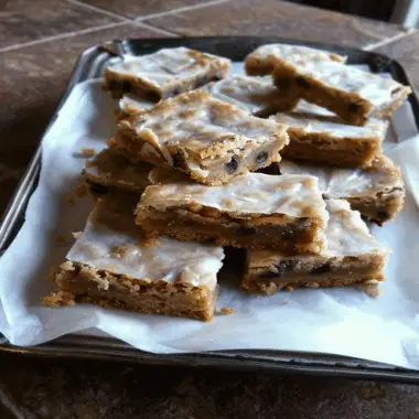 - Let cool completely before frosting with a mixture of butter, brown sugar, powdered sugar, and milk.