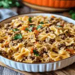 Velveeta Beef Bowtie Pasta Casserole is the ultimate comfort food that combines creamy Velveeta cheese, tender bowtie pasta, and savory ground beef. This rich and flavorful dish comes together quickly, making it perfect for busy weeknights or family gatherings. With its gooey texture and mouth-watering aroma, this casserole is sure to please everyone at your table.