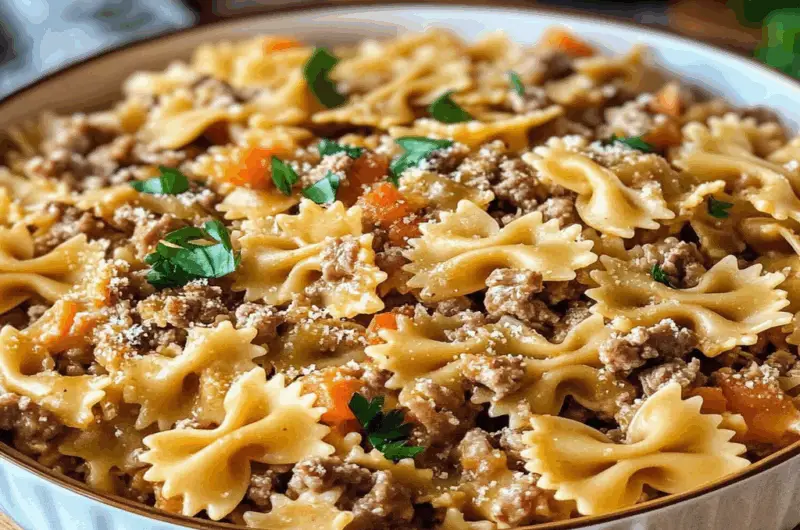 In conclusion, Velveeta Beef Bowtie Pasta Casserole is a delicious and comforting dish that combines rich flavors and creamy textures. With simple ingredients and a quick preparation time, this casserole is perfect for busy weeknights or family gatherings. tender beef stroganoff recipe By following the recipe guidelines and tips provided, you can easily create a delightful meal that everyone will enjoy. Don’t hesitate to customize it with your favorite veggies or spices to make it uniquely yours!