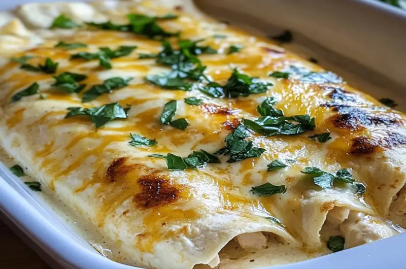 In summary, this White Chicken Enchiladas Recipe delivers a delightful combination of flavors and textures that will please your family or guests. With simple ingredients like shredded chicken, tortillas, and creamy sauces, you can create a satisfying meal in no time. Baking enriches the flavors while ensuring everything melds together beautifully. Whether enjoyed on their own or served with sides like rice or salad, these enchiladas are sure to become a favorite in your home cooking repertoire!