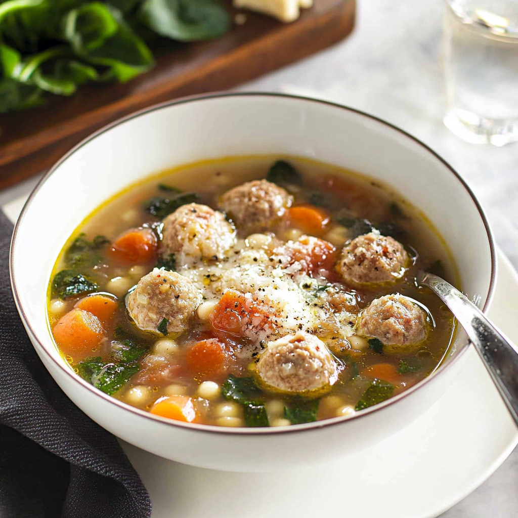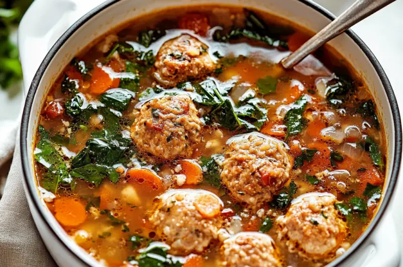 Italian Wedding Soup is a heartwarming blend of tender meatballs, vibrant greens, and a rich, savory broth. This comforting dish traces its roots to Italian-American cuisine, where it symbolizes the union of flavors—much like marriage itself! Perfect for family gatherings or cozy dinners, this soup is not only delicious but also easy to make from scratch. In just a few simple steps, you can enjoy a bowl brimming with wholesome ingredients that will warm your soul.