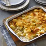 This cheesy cauliflower gratin is perfect for friendsgiving or any occasion where comfort food reigns supreme. Just be prepared for requests to take home leftovers—if there are any left! For more inspiration, check out this Amish Country Casserole recipe.