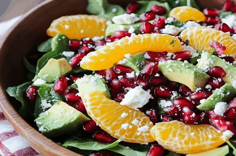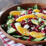 In conclusion, the Pomegranate, Orange, and Avocado Salad is a delightful blend of flavors that offers numerous health benefits. With its rich antioxidants from pomegranates, vitamin C from oranges, and healthy fats from avocados, this salad supports overall wellness while being incredibly satisfying. Whether you’re looking for a light lunch or a vibrant side dish for dinner, this salad is an excellent choice that you can easily customize to suit your taste preferences. Enjoy this refreshing dish as part of a balanced diet!