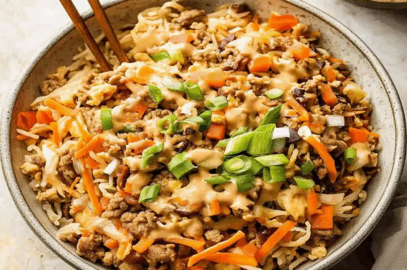 Egg Roll in a Bowl is often considered a healthier alternative to traditional fried egg rolls. By skipping the wrapper and frying process, you reduce calories and unhealthy fats. The use of fresh vegetables and lean protein boosts its nutritional profile. Furthermore, you can control the amount of soy sauce and oil used, making it easier to keep this dish light and wholesome.