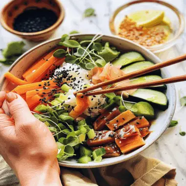 The vibrant colors dance in the bowl, promising a symphony of flavors that will tickle your taste buds. Japanese food: vegan sushi bowls with pickled ginger are not just a meal; they are an experience! Imagine the fluffy sushi rice intertwined with fresh veggies and the zing of pickled ginger, […]