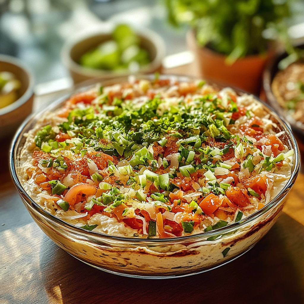 If you’re looking for a crowd-pleaser that combines flavor, versatility, and ease of preparation, then this Doctored Up 7 Layer Dip is the perfect addition to your next gathering. This delightful dish features layers of creamy beans, zesty salsa, guacamole, cheese, and other fresh toppings that create an explosion of flavors in every bite. Not only is it visually appealing with its vibrant colors, but it also caters to various dietary preferences. Whether it’s game day, a holiday celebration, or just a casual get-together with friends, this dip is sure to be a hit. The best part? It’s quick to assemble and can be made ahead of time. Gather your ingredients and get ready to impress your guests with this scrumptious seven-layer delight!