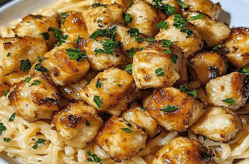 Lemon & Garlic Chicken Bites with Creamy Rigatoni Parmesan is a delightful dish featuring tender chicken pieces marinated in lemon juice and garlic. These flavorful bites are sautéed to perfection and served over creamy rigatoni pasta tossed with rich Parmesan cheese. This dish combines zesty flavors and creamy textures, making it a favorite for family dinners or special occasions. For more inspiration, check out this Garlic Butter Lobster Tail recipe.